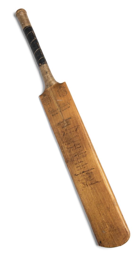 A cricket bat signed by the 1948 Australian