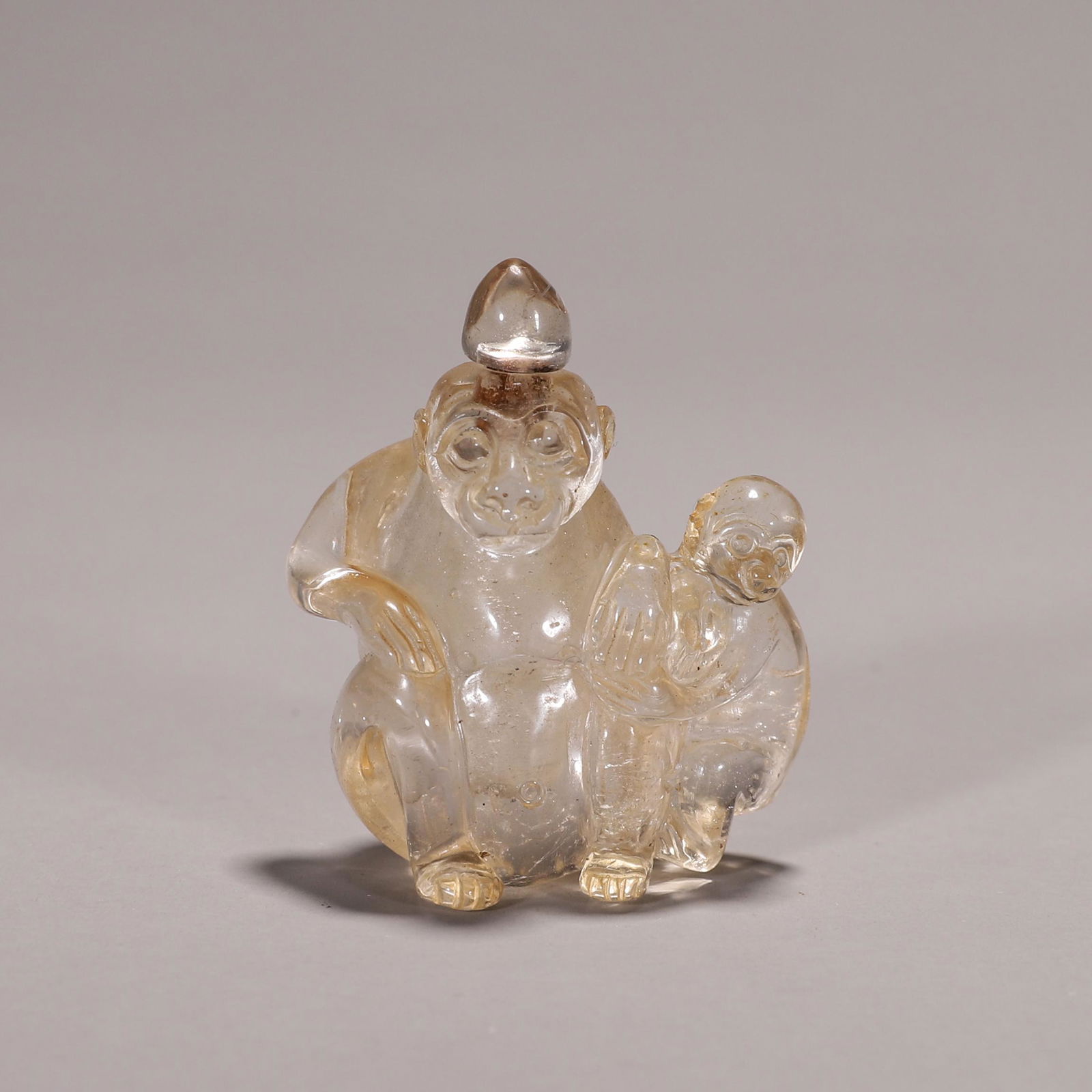 A CRYSTAL 'Monkey' SNUFF BOTTLE.
