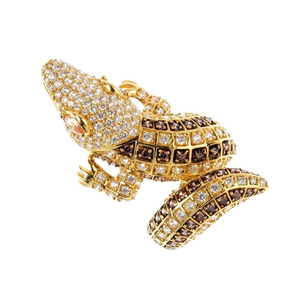 A cubic zirconia crocodile ring. The circular-shape