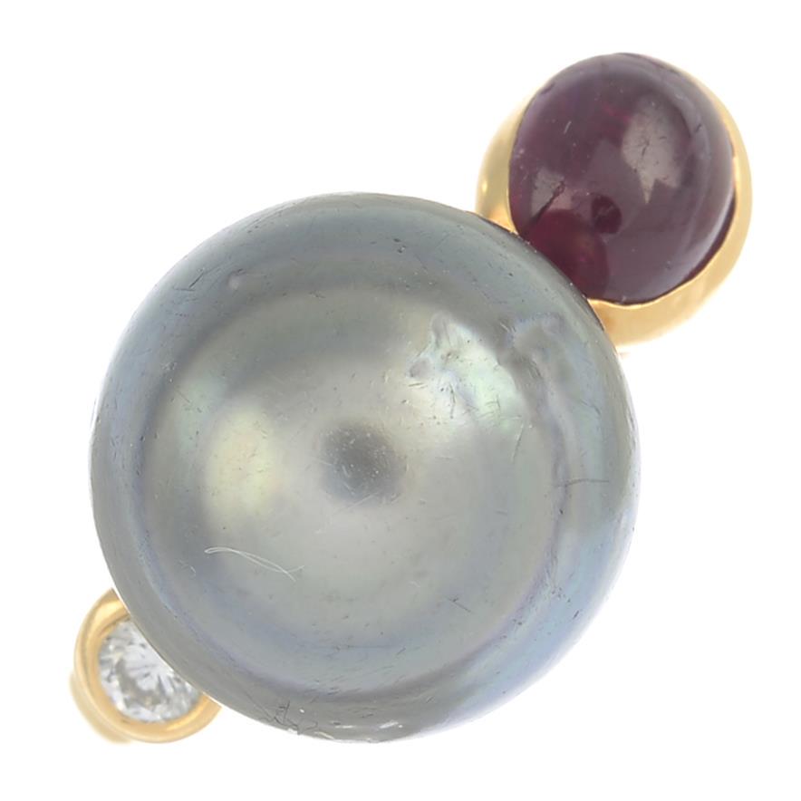 Designer Angela Conty Tahitian Pearl and Pink Sapphire Flower Ring in 18k Yellow GoldEric's Estate & Jewelry4.6(529)See Sold PriceJul 23, 2025