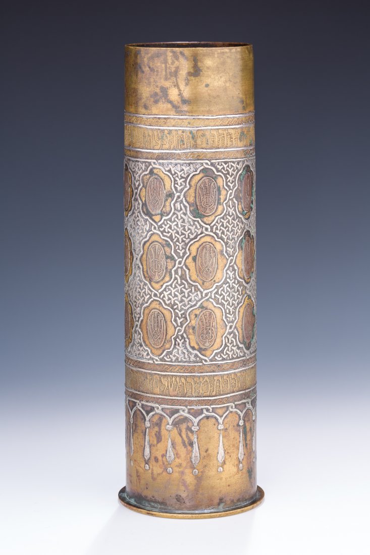 A DAMASCENE MORTAR SHELL. Jerusalem, 1919. decorated