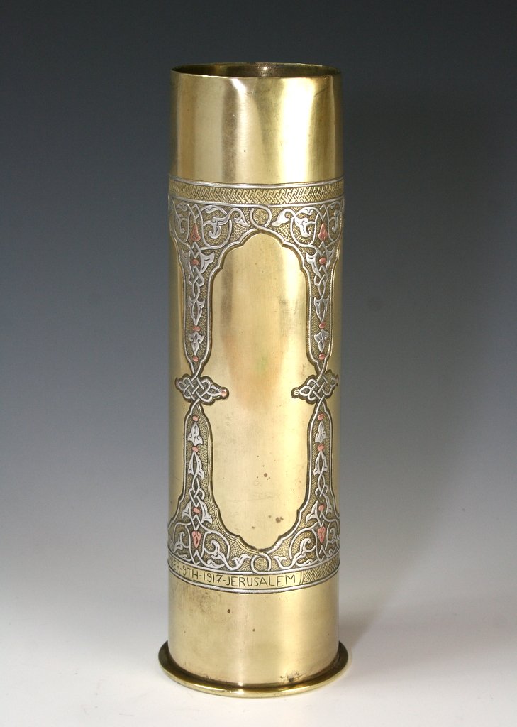 A DAMASCENE MORTAR SHELL. Jerusalem, c. 1917. Engraved