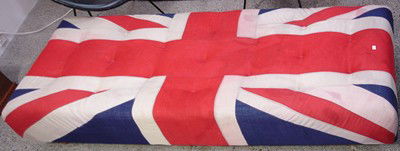 A day bed upholstered with a Union Jack flag