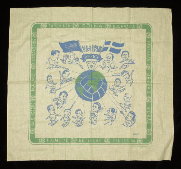 A decorative 1958 World Cup printed cotton tablecl