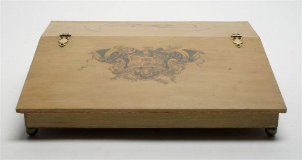 A Decoupage Lap Desk, Height 3 1/2 x width 13 5/8