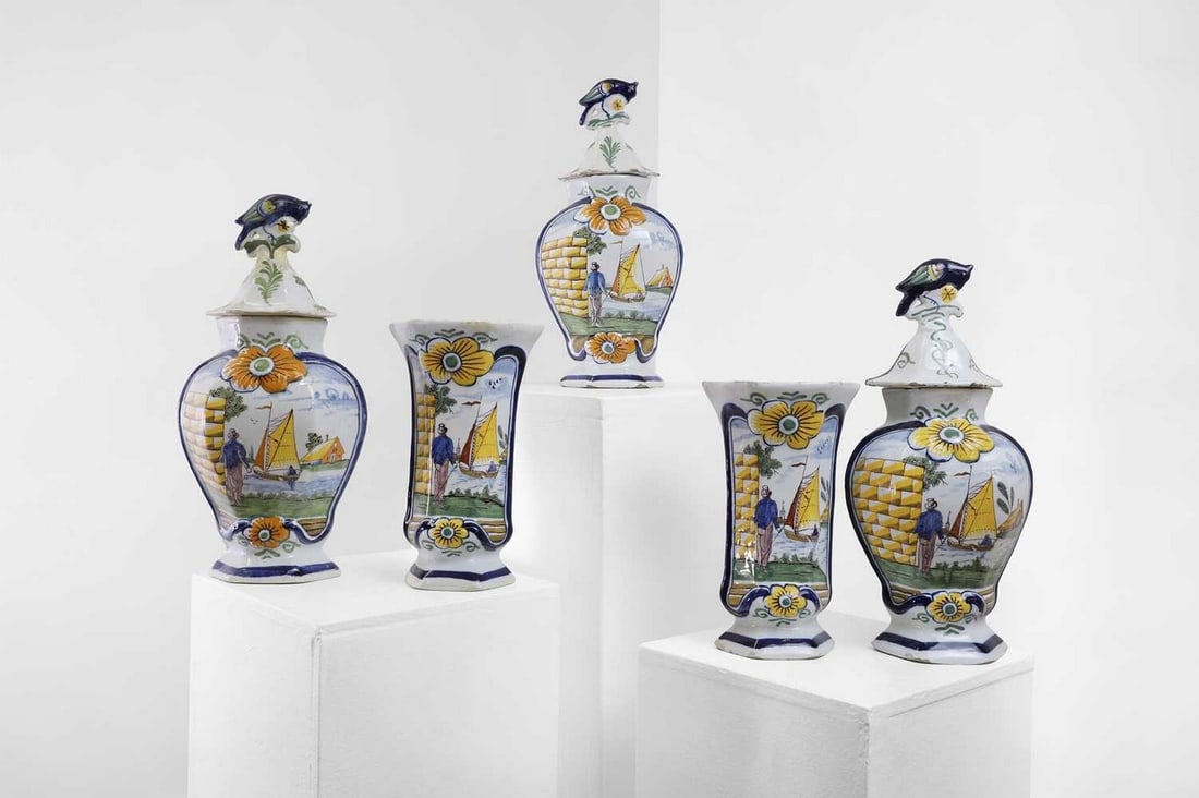 A delftware tin-glazed earthenware garniture,