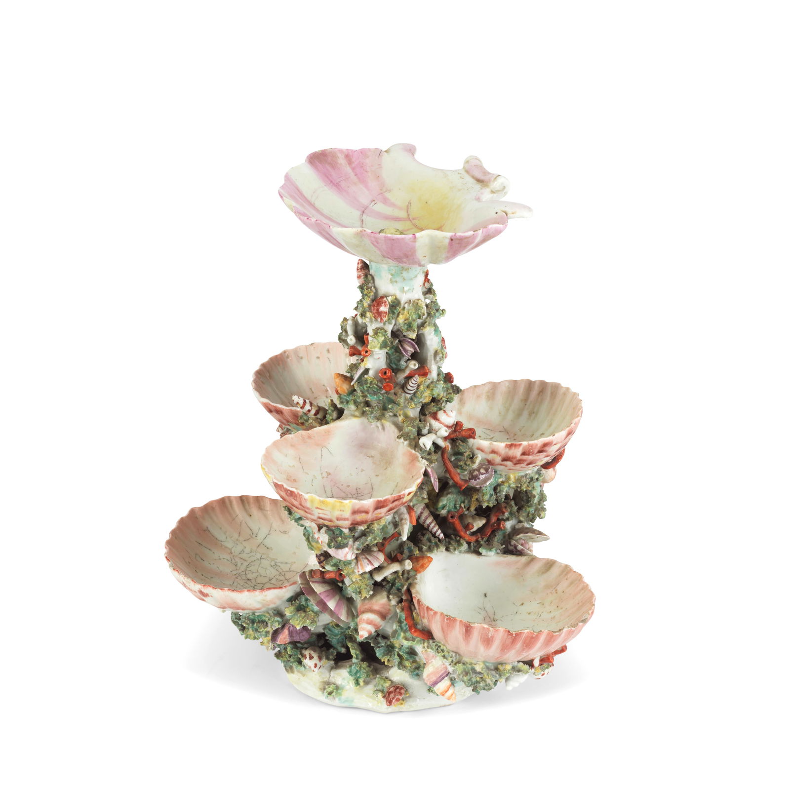 An extraordinary Bow shell centrepiece or pickle stand and a triple-shell sweetmeat, circa 1750-55JAY STRONGWATER GROTTO CORAL REEF CAVIAR SERVER W/SPOON 10" DIA X 8" TALL22 hrs LeftA Worcester sweetmeat dish, circa 1772Cambridge Glass Company Crown Tuscan Shell Bowl12 hrs LeftFENTON TOPAZ HOBNAIL OPALESCENT VASELINE GLASS EPERGNE UV-REACTIVE2 days LeftMagnificent & Rare 19th C. English Porcelain Centerpiece Retailer’s Mark Daniell4 days LeftA Worcester bough pot, circa 1768-70Three Pieces of English Salt Glazed Polychrome Decorated Teaware in Raised DecorationFeb 26, 2026London 1804 probably by Thomas Holland II A George III sterling silver gilt centrepiece on standFeb 18, 2026Hand-Painted Porcelain Shell Dishes rose flower Hand-Painted Porcelain Shell Dishe ? Herend Style ?14 hrs LeftTable Lamp, Wheeling Peach Blow Art Glass, Considered To Be One Of Only Three KnownMar 21, 2026Vintage Large Conch Shell & Shells Marine Table Lamp Green Resin Base Nautical Decor4 days LeftVintage Speckled Ceramic Shell Shaped Floral Planter, by Hedi Schoop6 days LeftTwo Derby botanical dessert tureens, covers and stands, circa 1795Hull Pottery Open Rose Ivory Ceramic Basket 142-6Mar 01, 2026Vintage Mottahedeh Porcelain Shell DishFeb 17, 2026