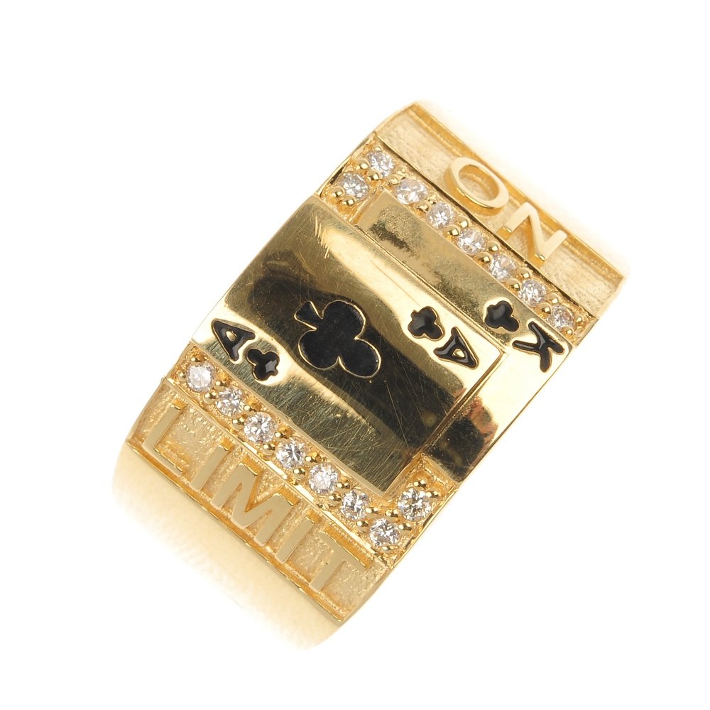 A diamond and and enamel novelty ring.