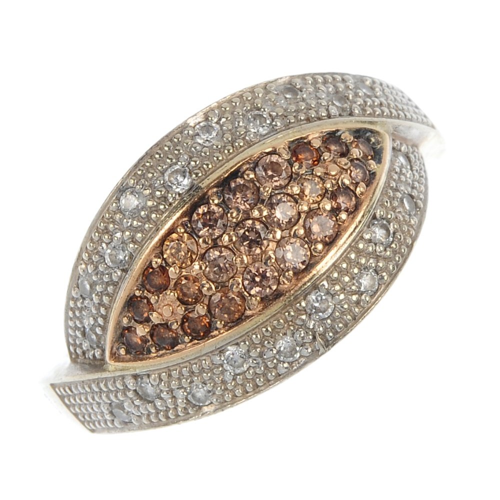A diamond and 'brown' diamond ring.