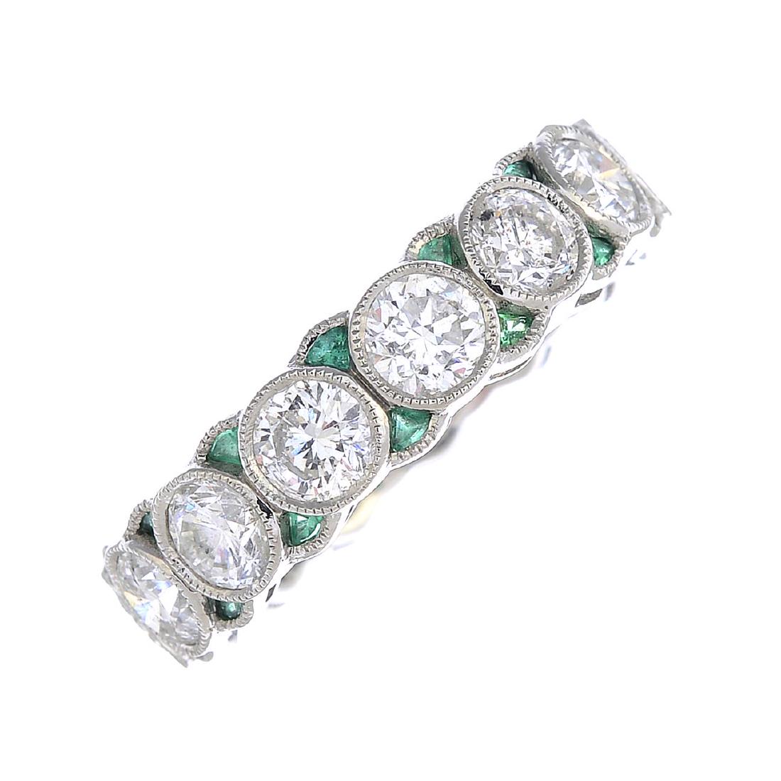 A diamond and emerald full eternity ring. The