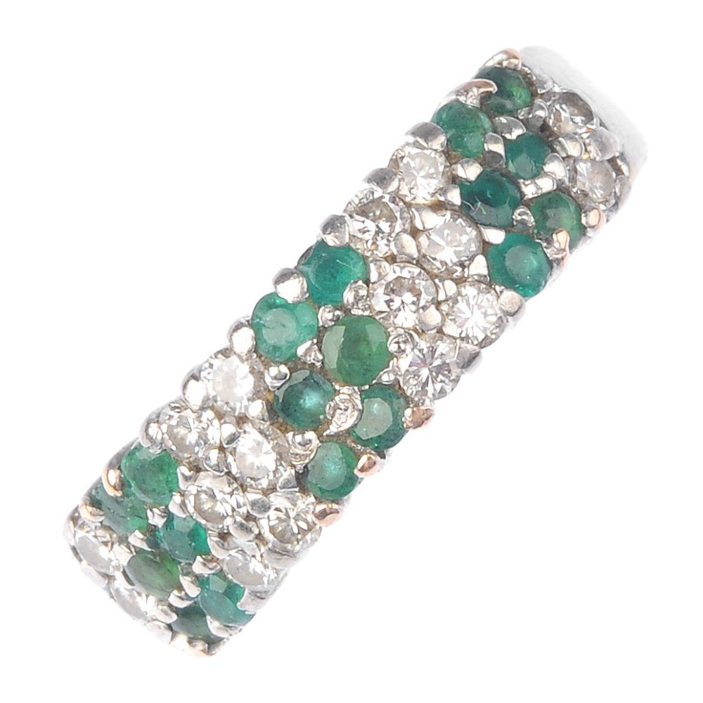 A diamond and emerald ring. The alternating