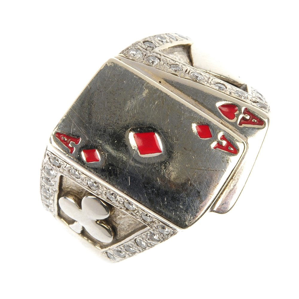 A diamond and enamel novelty ring.