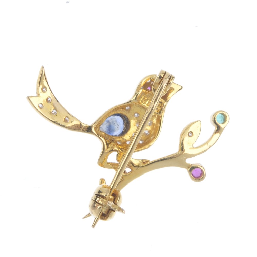 A diamond and gem-set bird brooch.