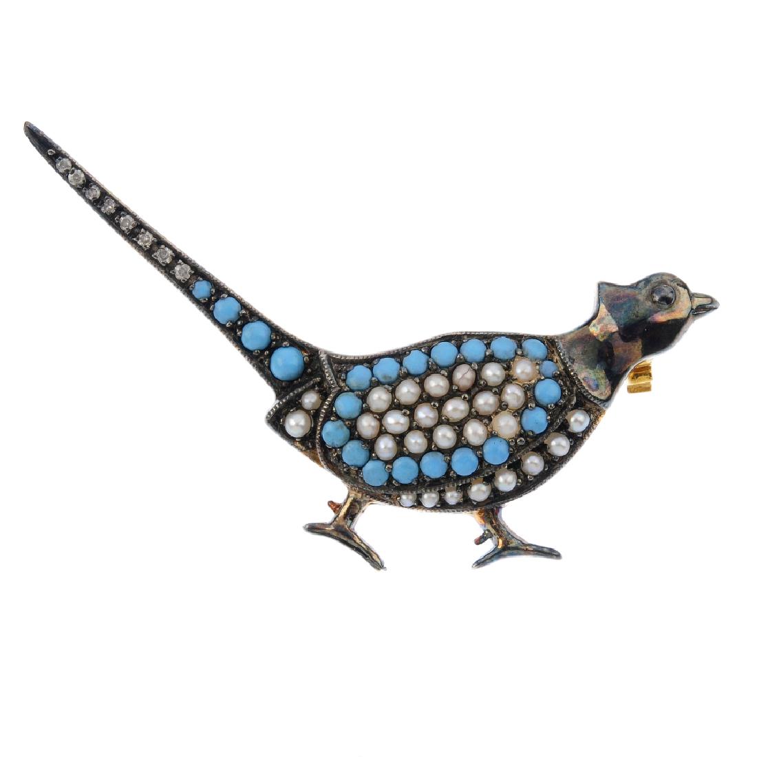 A diamond and gem-set brooch. Designed as a pheasant,