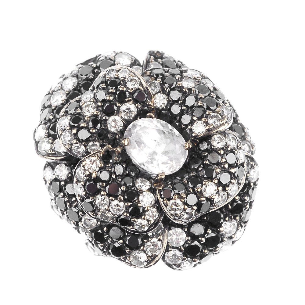 SoldA diamond and gem-set floral dress ring. The amethystA diamond and gem-set floral dress ring. The amethyst and diamond cluster, with citrine petal surround and green garnet and amethyst spray sides. Estimated total diamond weight 0.15ct. Ring size M. WeSee Sold Price