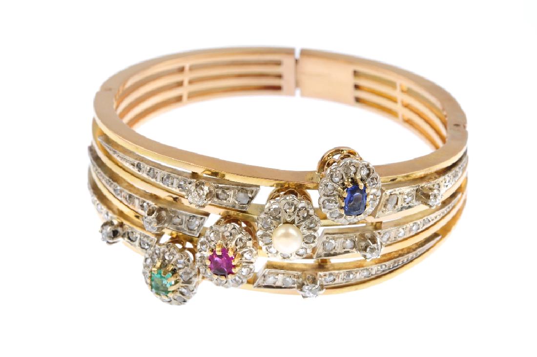 Antique 14K Gold Platinum Pearl Diamond Bangle 21 Diamonds 1.10 CtMynt Auctions4.4(829)$1003 days Left