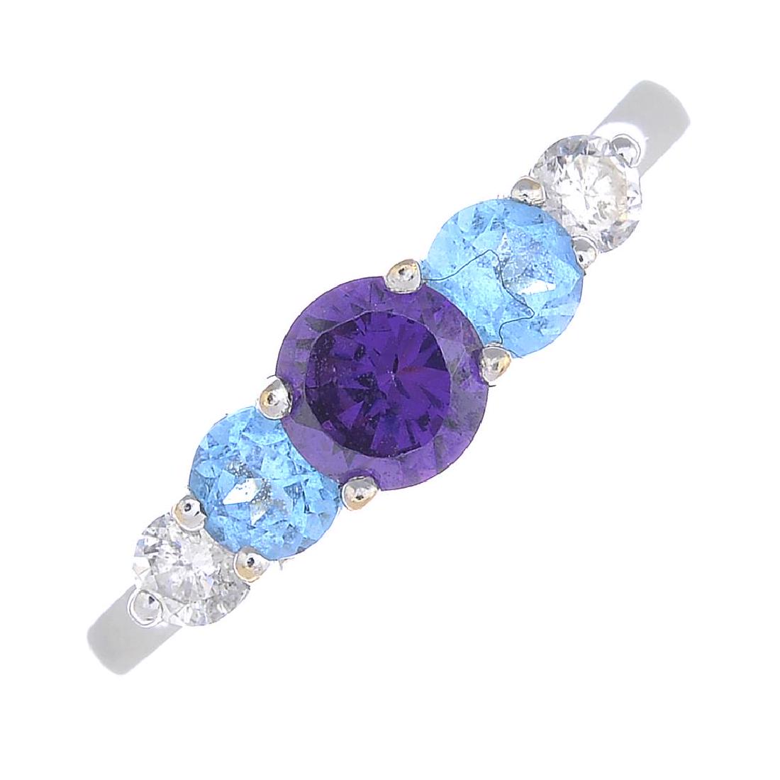 A diamond and gem-set ring. Designed as a brilliant-cut