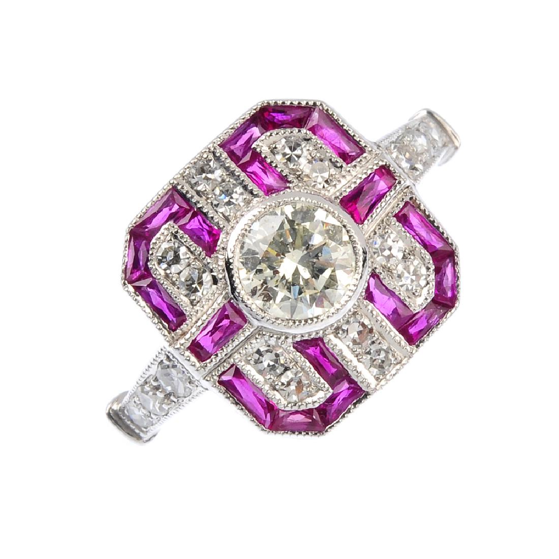 A diamond and ruby dress ring. The brilliant-cut