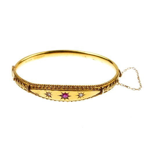Ruby and Diamond Hinged Bangle Bracelet in 14k Yellow GoldEric's Estate & Jewelry4.6(529)$2,0003 hrs Left