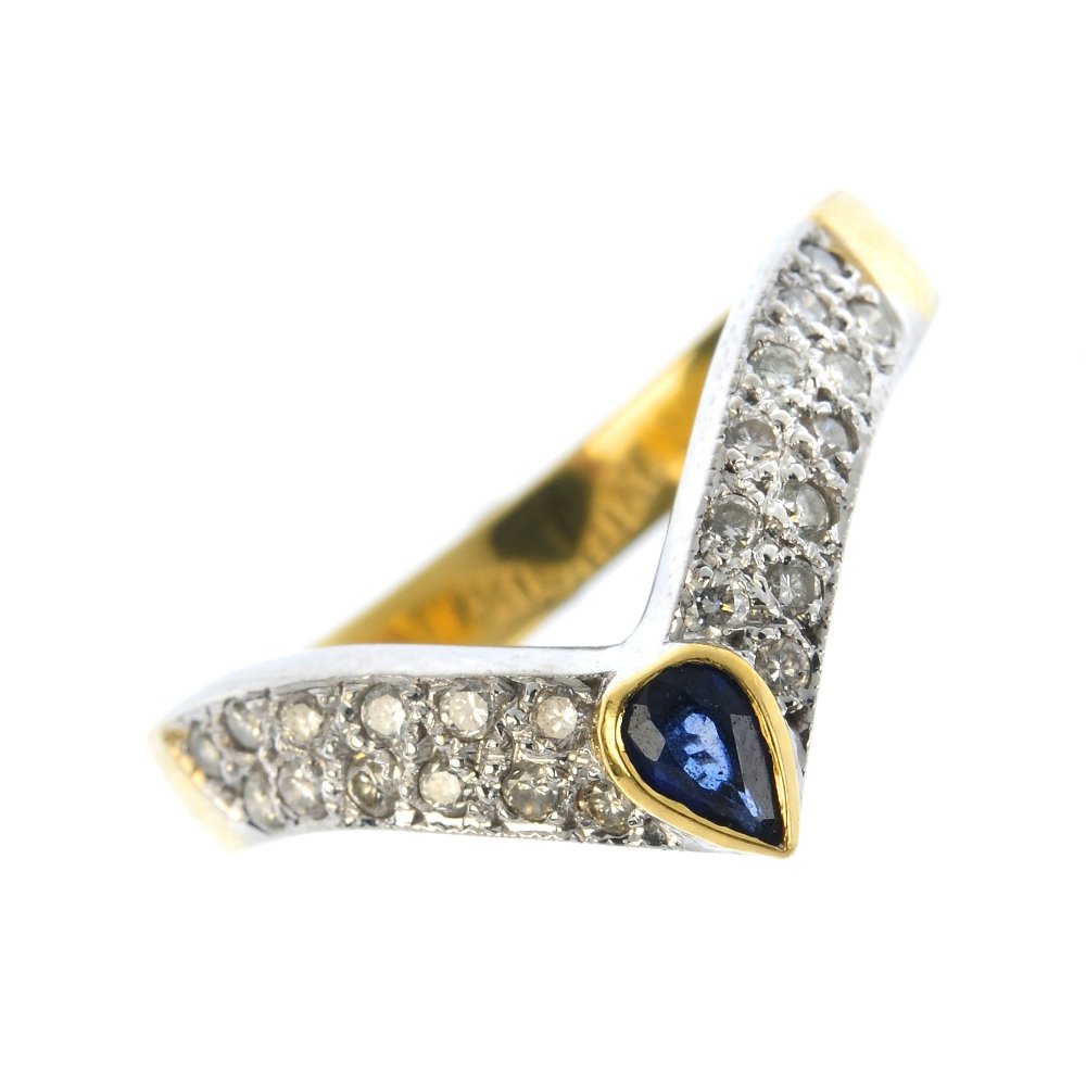 A diamond and sapphire chevron ring.