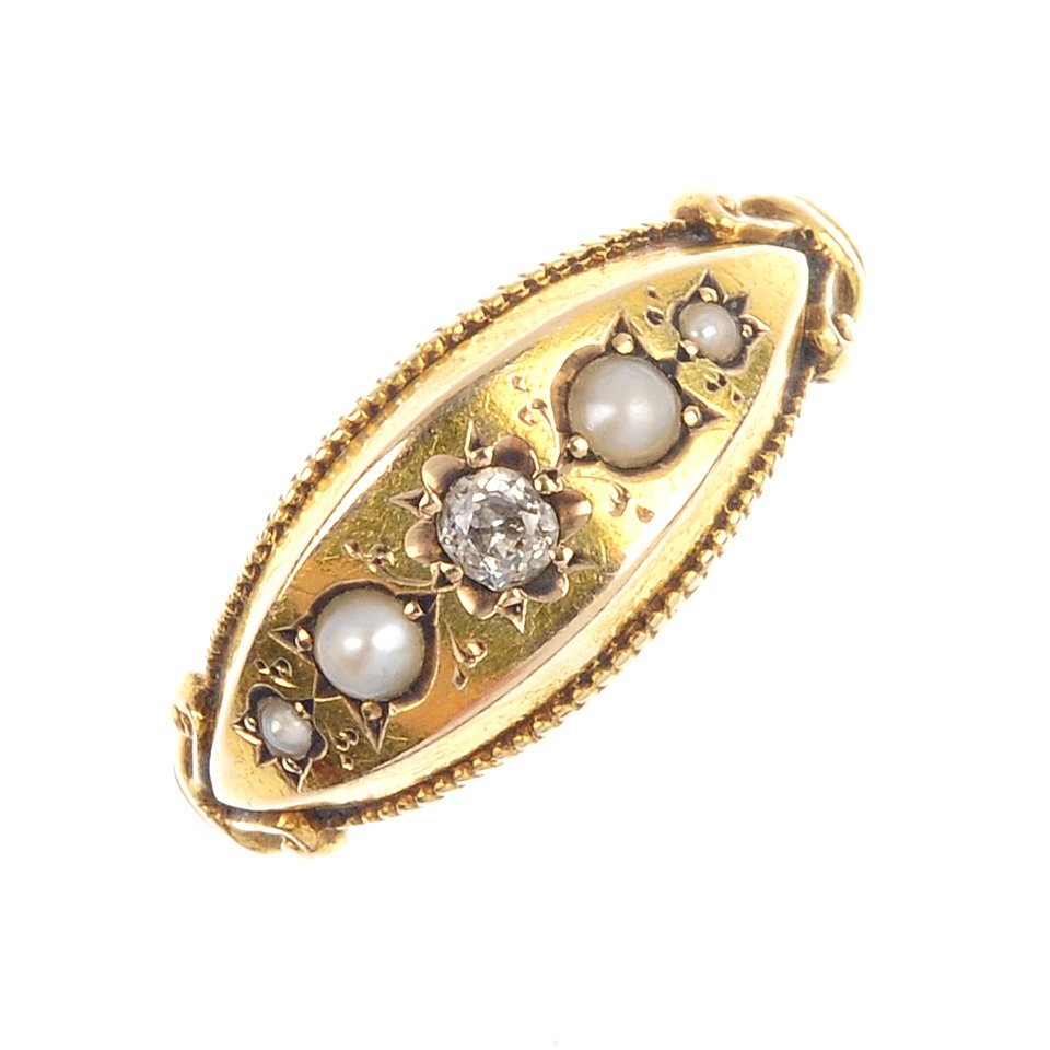 A diamond and split pearl band ring.
