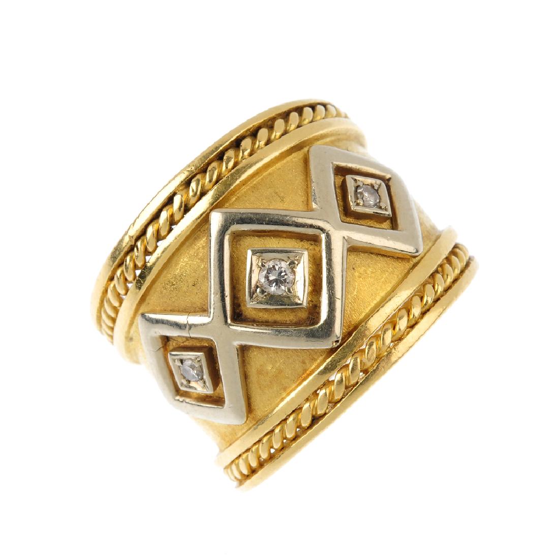 A diamond band ring. Designed as three brilliant-cut