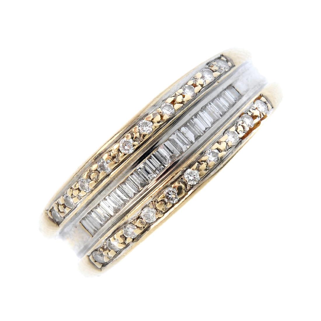 ROUND CUT DIAMOND FLUSH-SET THREE-ROW BAND RING