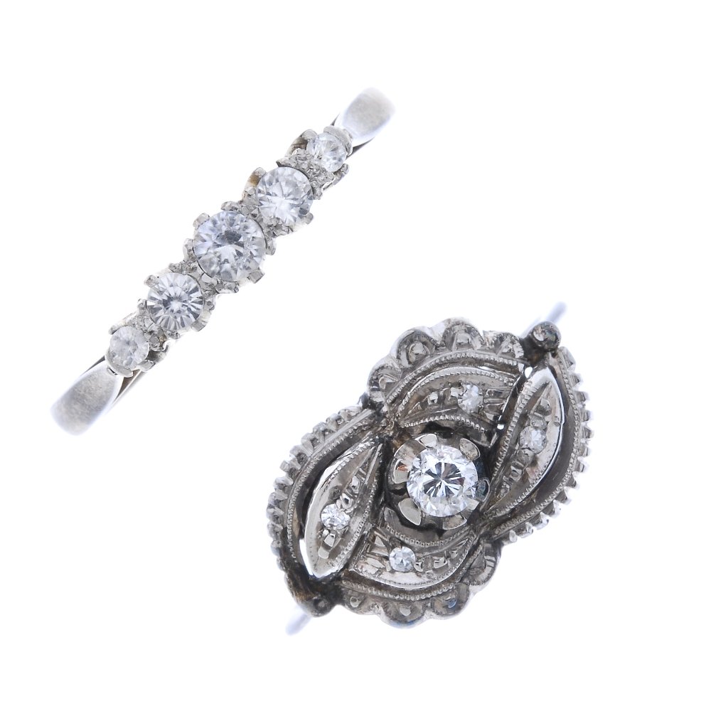 A diamond cluster ring and paste five-stone ring.