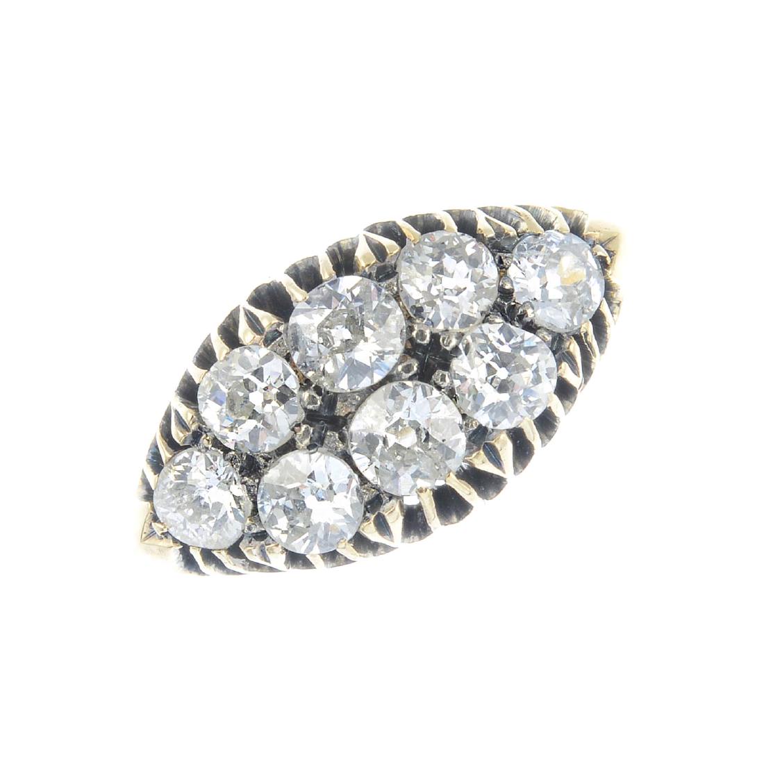 A diamond cluster ring. The old-cut diamond