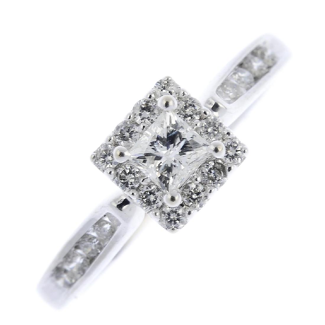 A diamond cluster ring. The square-shape diamond, with
