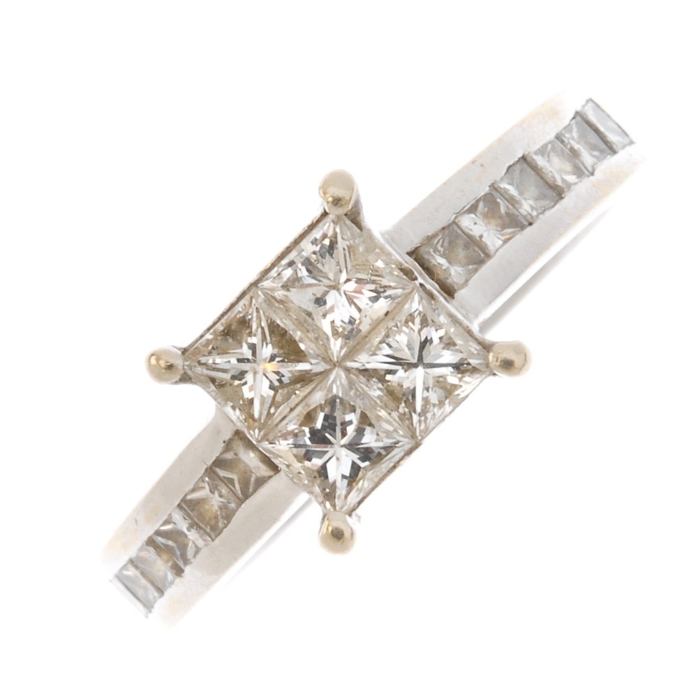 SoldAn 18ct gold diamond cluster ring. Of square outline,An 18ct gold diamond cluster ring. Of square outline, the brilliant-cut diamond cluster, with tapered shoulders. Estimated total diamond weight 0.30ct. Hallmarks for Sheffield. Ring size N. Weight 3gmSee Sold Price
