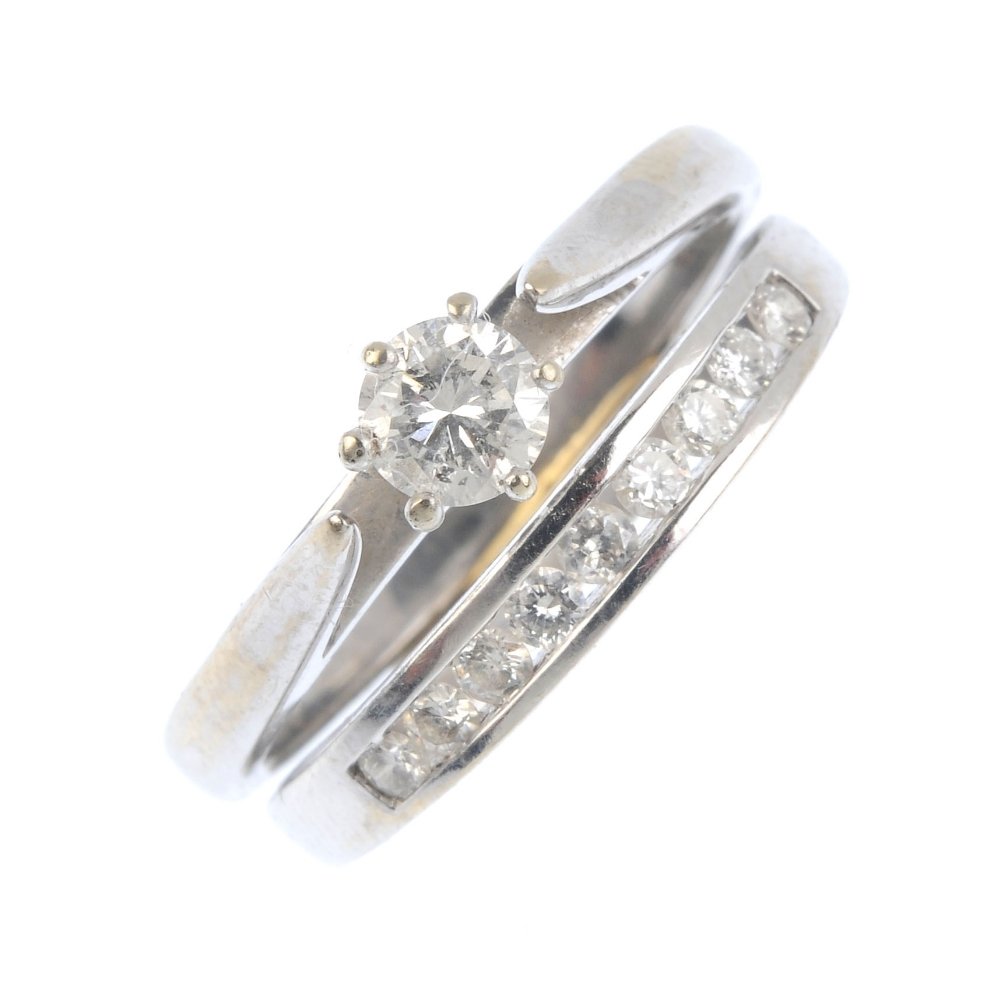 A diamond dress ring. Comprising a brilliant-cut