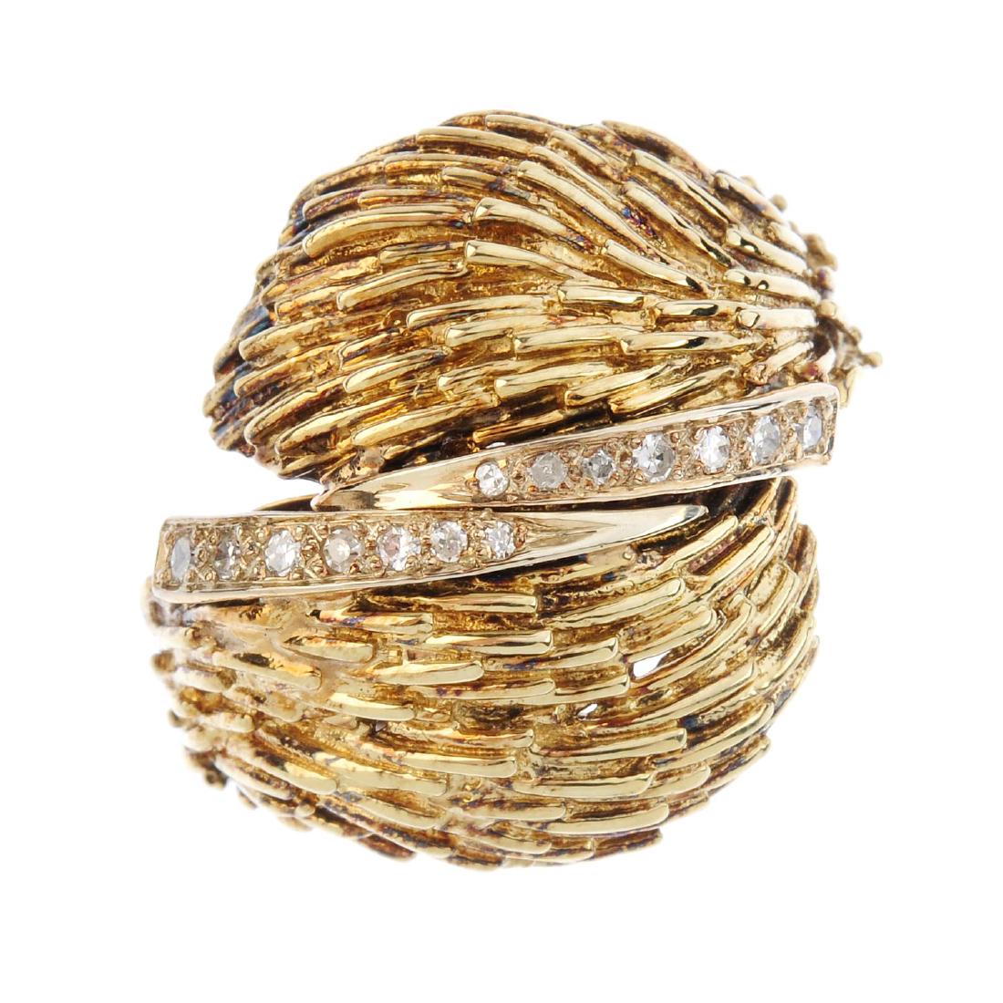 ROUND CUT DIAMOND CLUSTER CRISSCROSS BAND RING