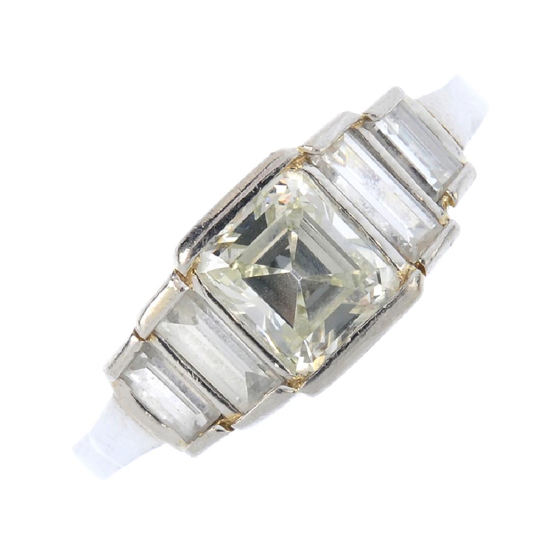 A diamond dress ring. The square-shape diamond, with