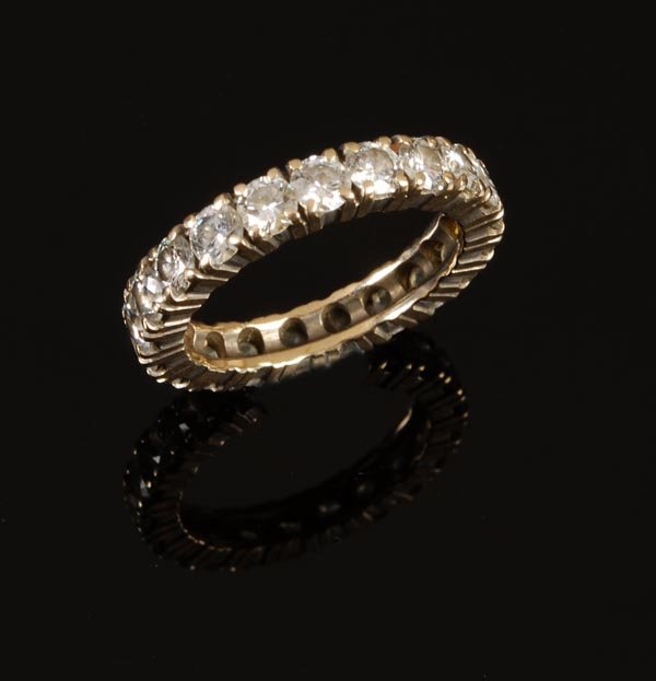 A diamond eternity ring, set all around with 21 br