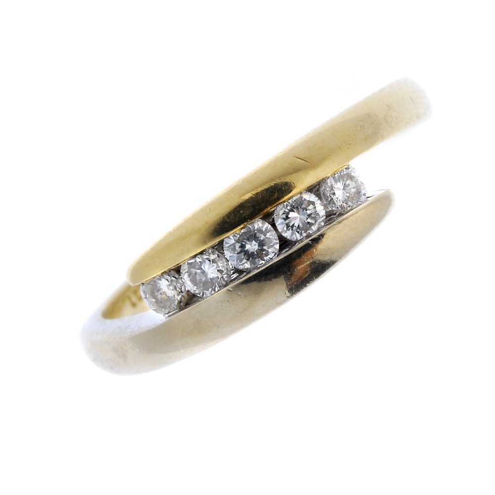 A diamond five-stone crossover ring.