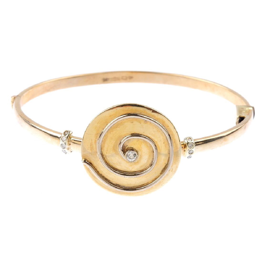 A diamond hinged bangle. Designed as a bi-colour spiral