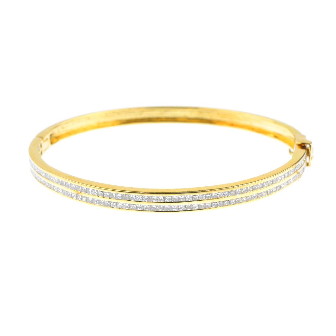 A diamond hinged bangle. Designed as two square-shape