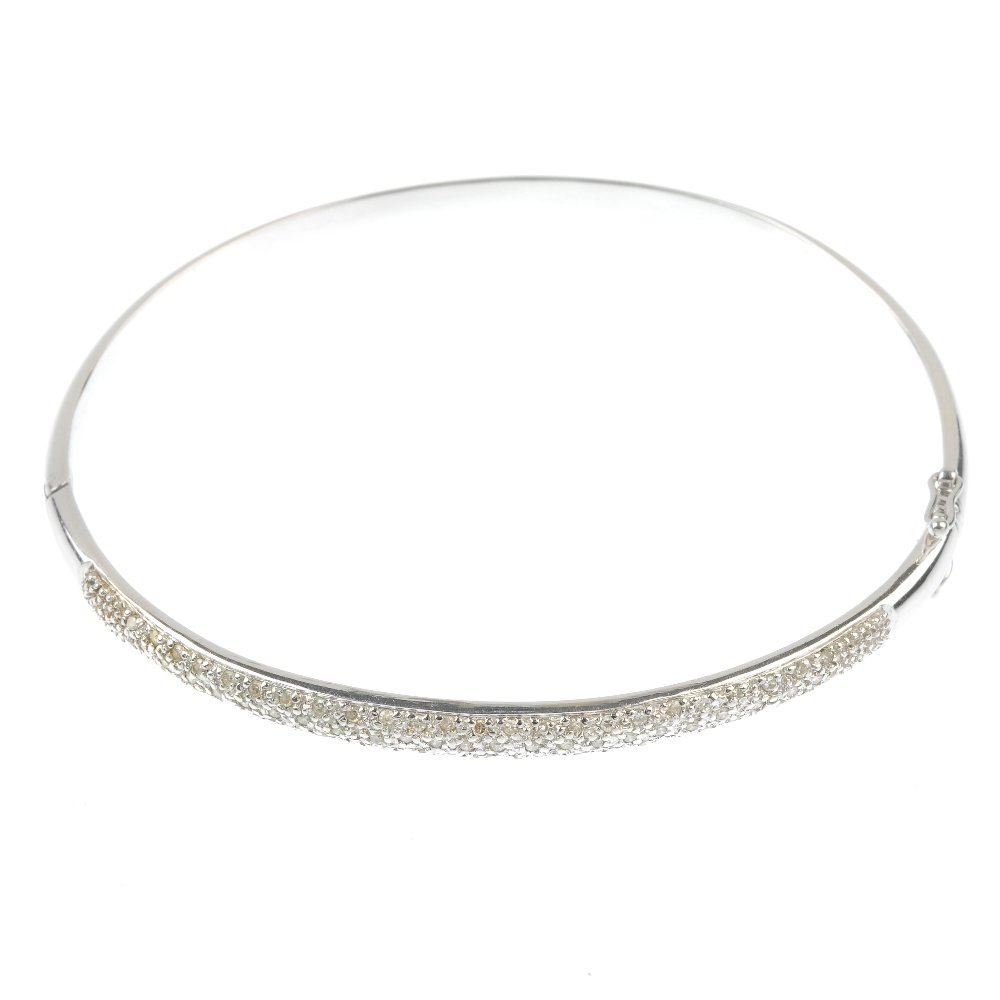 A diamond hinged bangle. The single-cut diamonds within