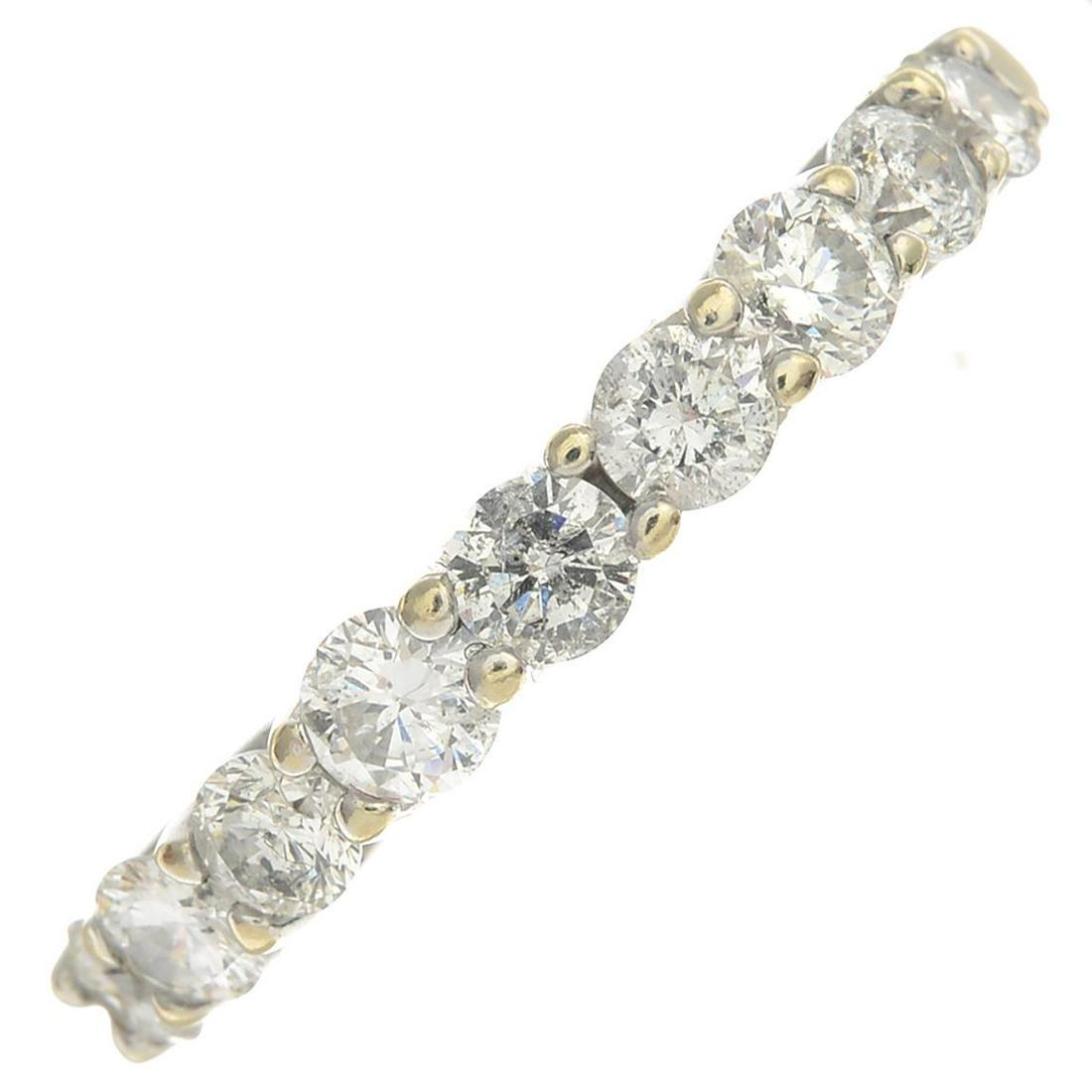 A diamond nine-stone ring.Estimated total diamond