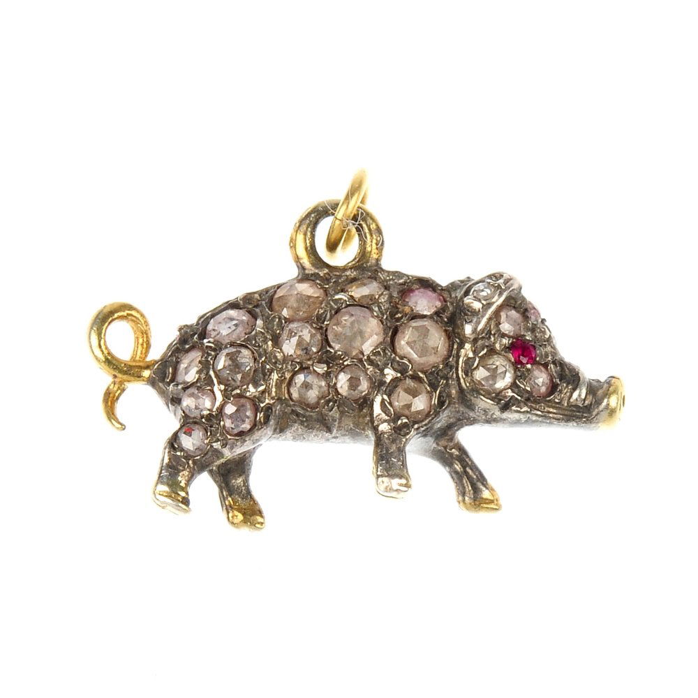 A diamond pig pendant.