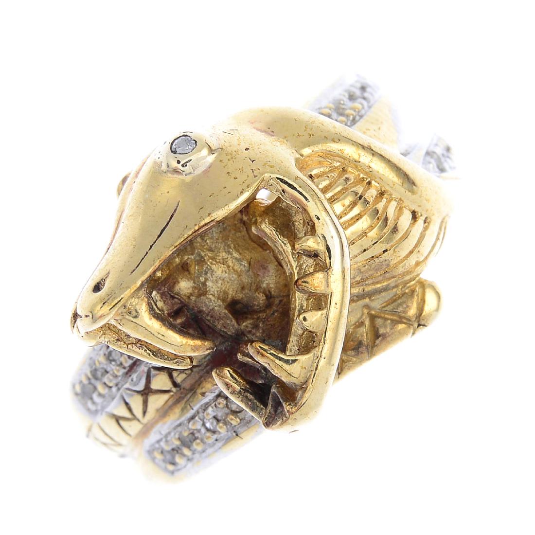 A diamond ring. Designed as a coiled snake, with