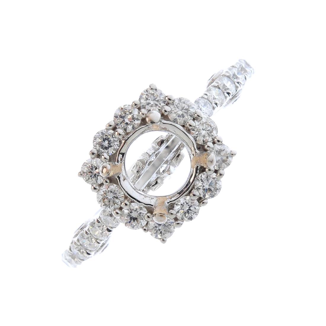 A diamond ring mount. The vacant circular setting, with