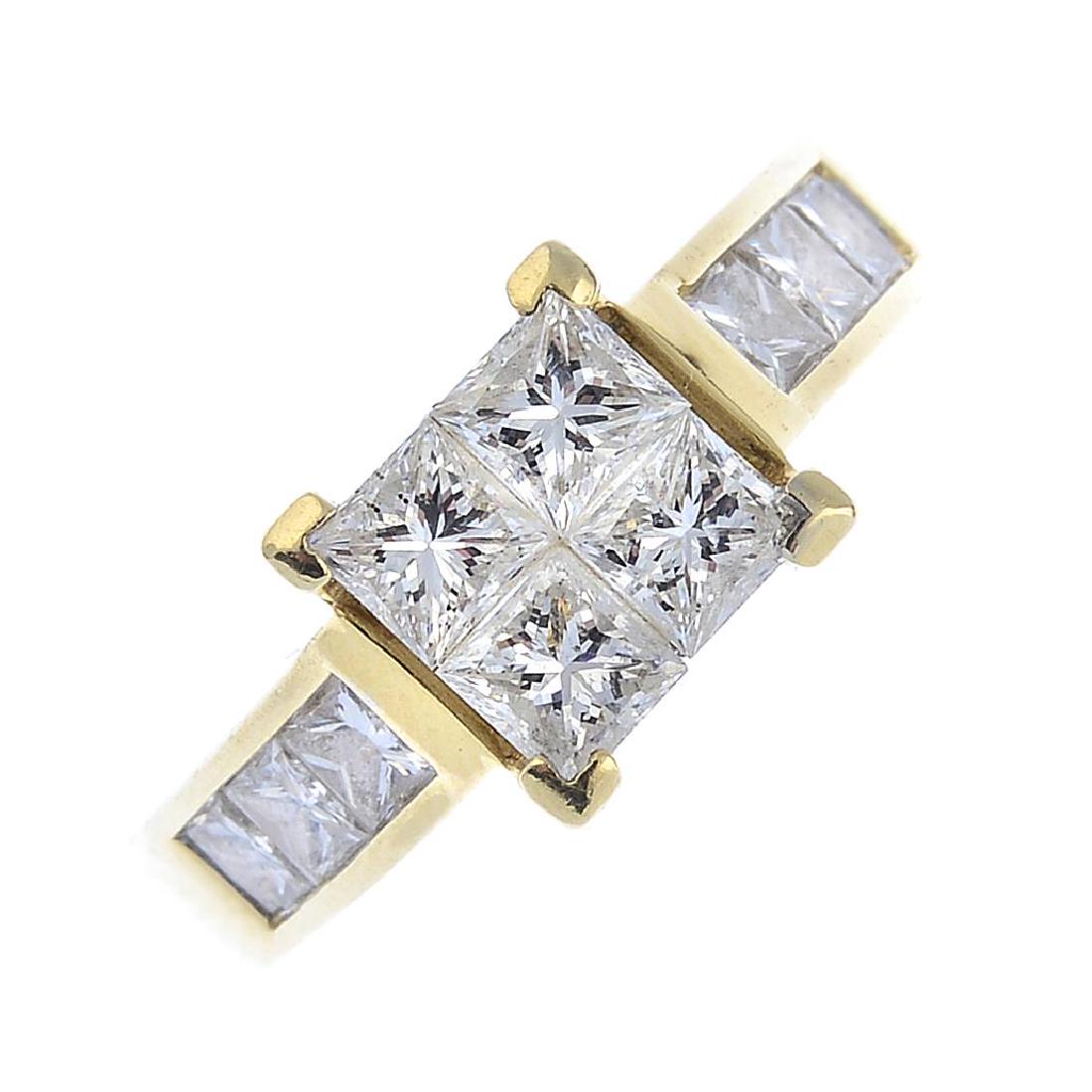 A diamond ring. The square-shape diamond cluster, with