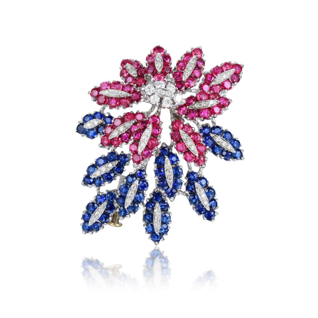 A Diamond, Ruby and Sapphire Pin