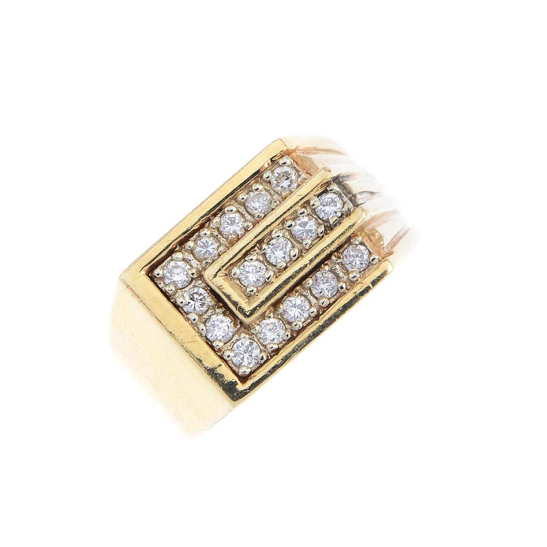 A diamond signet ring. The pave-set diamond panel, with