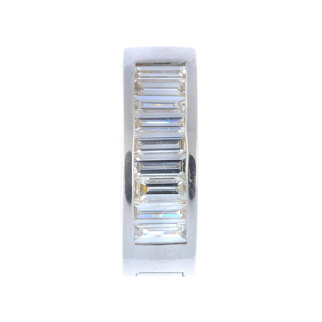 A diamond single earring. Designed as a baguette-cut