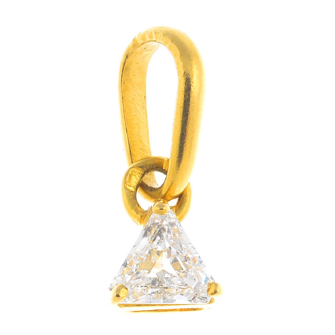 A diamond single-stone pendant. The triangular-shape