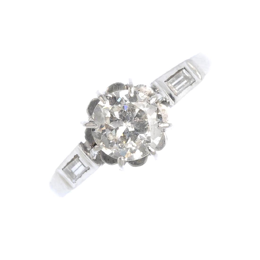 SoldA mid 20th century platinum and 18ct gold diamondA mid 20th century platinum and 18ct gold diamond single-stone ring. The circular-cut diamond, with pave-set diamond line sides. Principal diamond estimated weight 0.30ct, I-J colour, P1 clarity. RingSee Sold Price