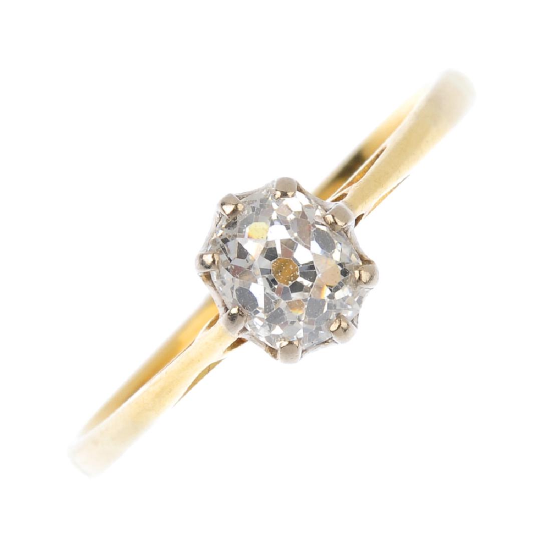 A diamond single-stone ring. The oval-shape old-cut